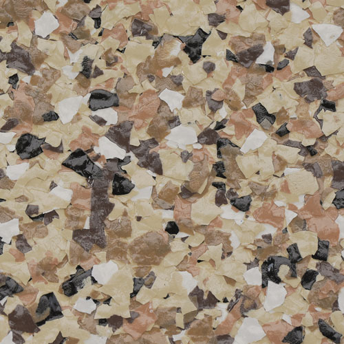 Like Polymer Flake, HYBRID FLAKE enhances the look of high-performance floor coating systems. HYBRID FLAKE (a paint aggregate made from water-based resins, organic minerals, additives, and pigments) is a series of Flake blends that feature multiple sizes, with the majority of the makeup being 1/16” and the remainder being either 1/4” or 1/8” Flake.